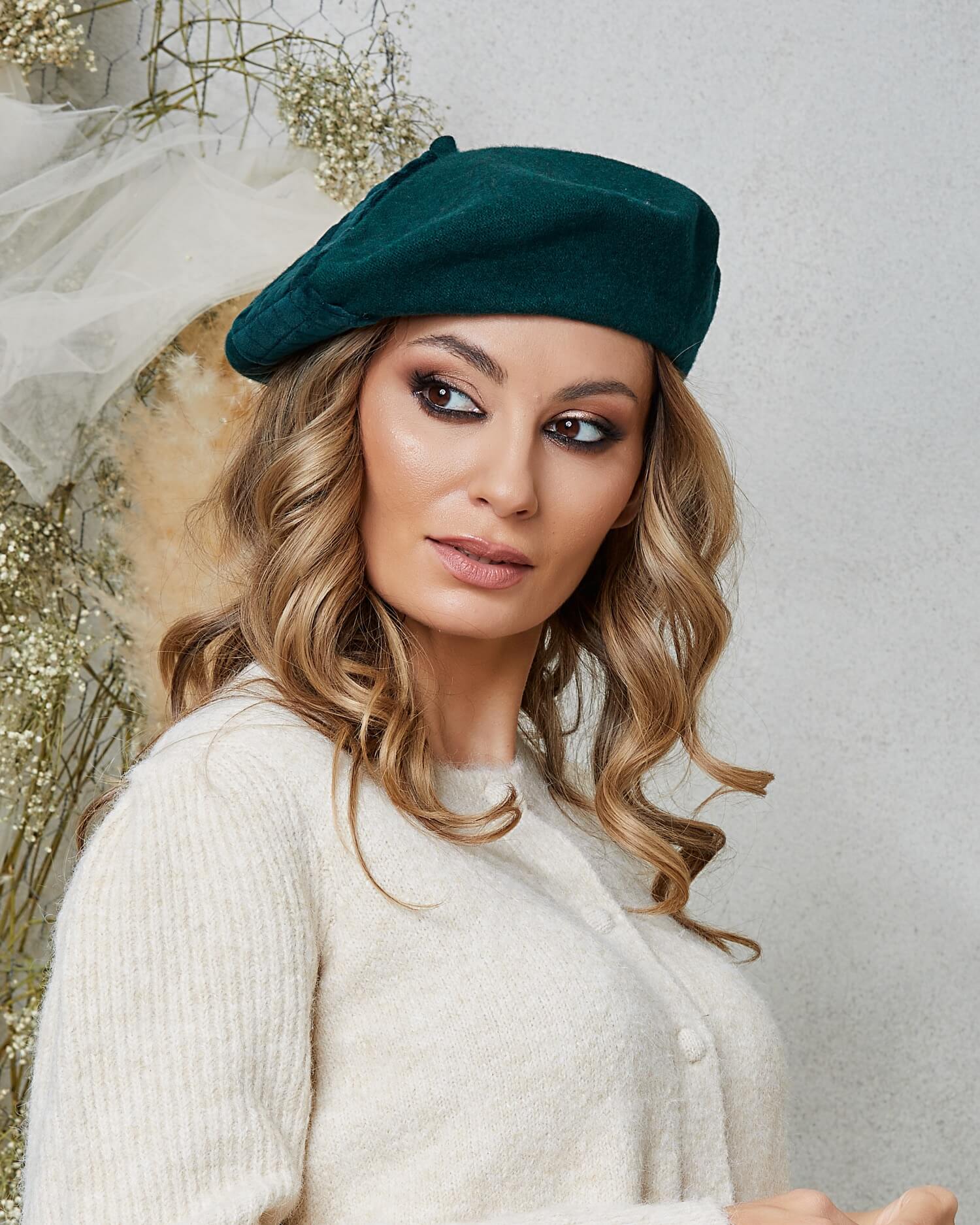 Verdele inchis nu este doar o culoare, ci o promisiune. Este promisiunea unei prezente puternice, a unui stil sofisticat, dar fara efort, si a unei elegante atemporale. Este o nuanta care evoca natura, stabilitatea si luxul, fiind in acelasi timp versatila si profund evocatoare. Croiala clasica asigura ca ea se va potrivi perfect, indiferent de ocazie. In partea dreapta, o aplicatie de catifea cu aspect matlasat ii adauga un caracter distinct si un plus de textura. Acest detaliu rafinat, impreuna cu placuta rotunda care poarta cu mandrie initiala Ralenne, face din aceasta bereta o declaratie de stil in sine. Este evident ca fiecare detaliu a fost gandit cu atentie, pentru a crea o piesa care sa se distinga in multime.