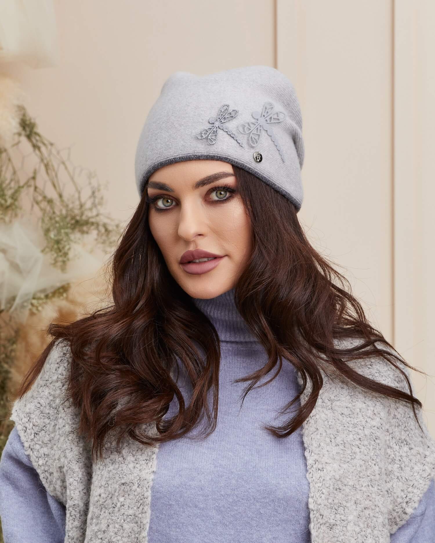 Caciula de dama Ligi este conceputa pentru a se potrivi cu orice stil vestimentar, putand fi purtata atat cu o tinuta eleganta, cat si cu una casual, fiind o alegere ideala pentru o plimbare in parc sau pentru o iesire cu prietenii. Asigura protectie capului impotriva frigului si a vantului. Pliurile prinse la spate adauga un aspect distinctiv si o nota de eleganta, in timp ce decorul sub forma de libelula ii confera un farmec aparte si o face sa iasa in evidenta. Acest detaliu deosebit atrage privirile admirative ale celor din jur si o face sa fie o piesa care nu poate trece neobservata.