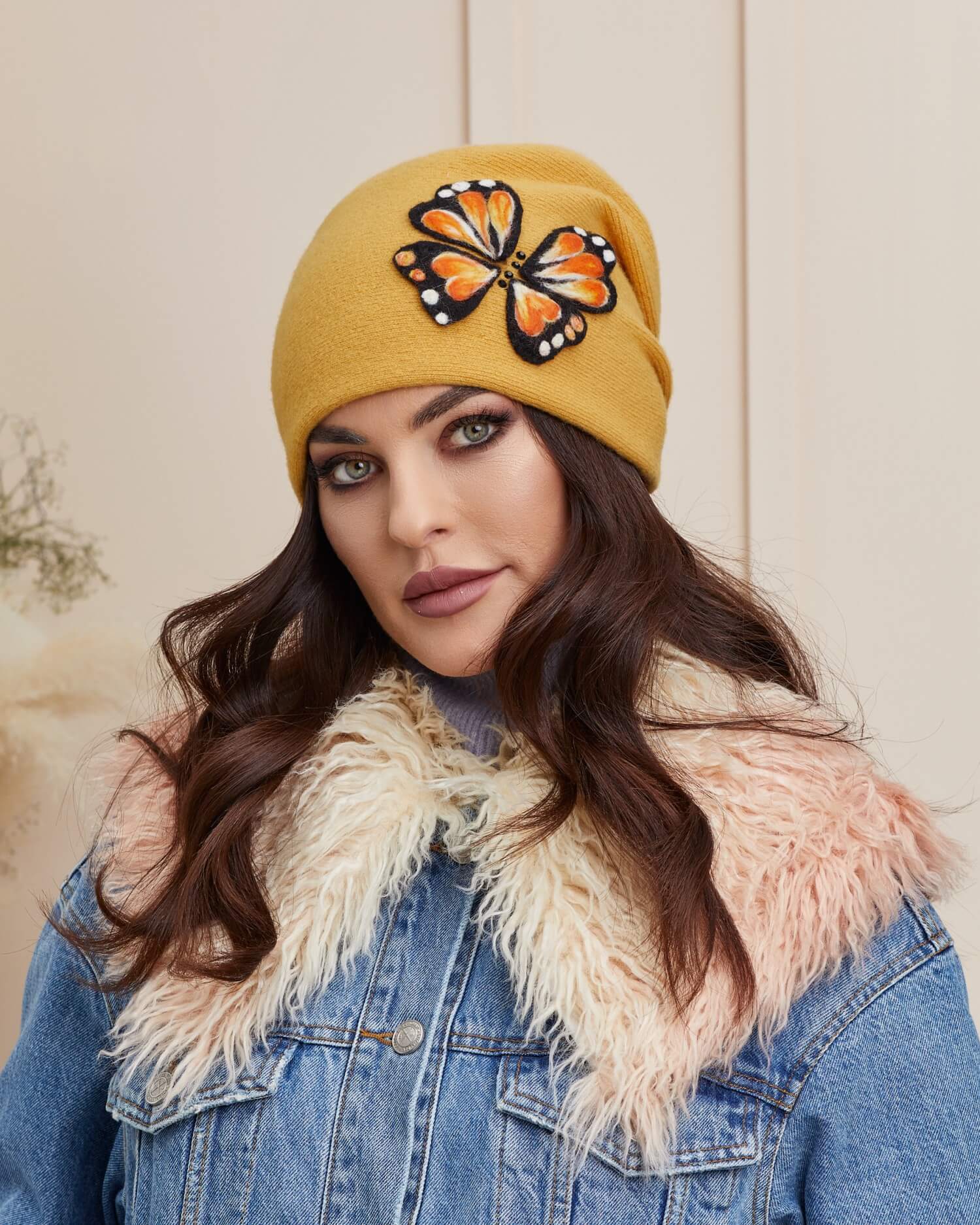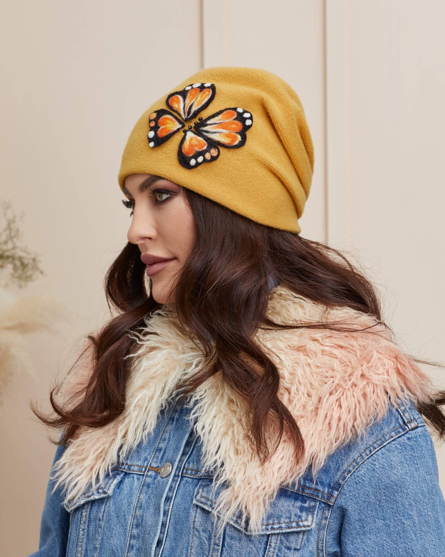 Caciula de dama Ruby este un accesoriu care adauga un plus de stralucire garderobei tale de toamna-iarna. Modelul are un design creativ si expresiv. Decorul sub forma de fluture ii confera un aspect sofisticat si atrage privirile celor din jur. Acest accesoriu poate fi purtat cu incredere in orice situatie si poate fi considerat un must-have al sezonului rece de toamna-iarna.