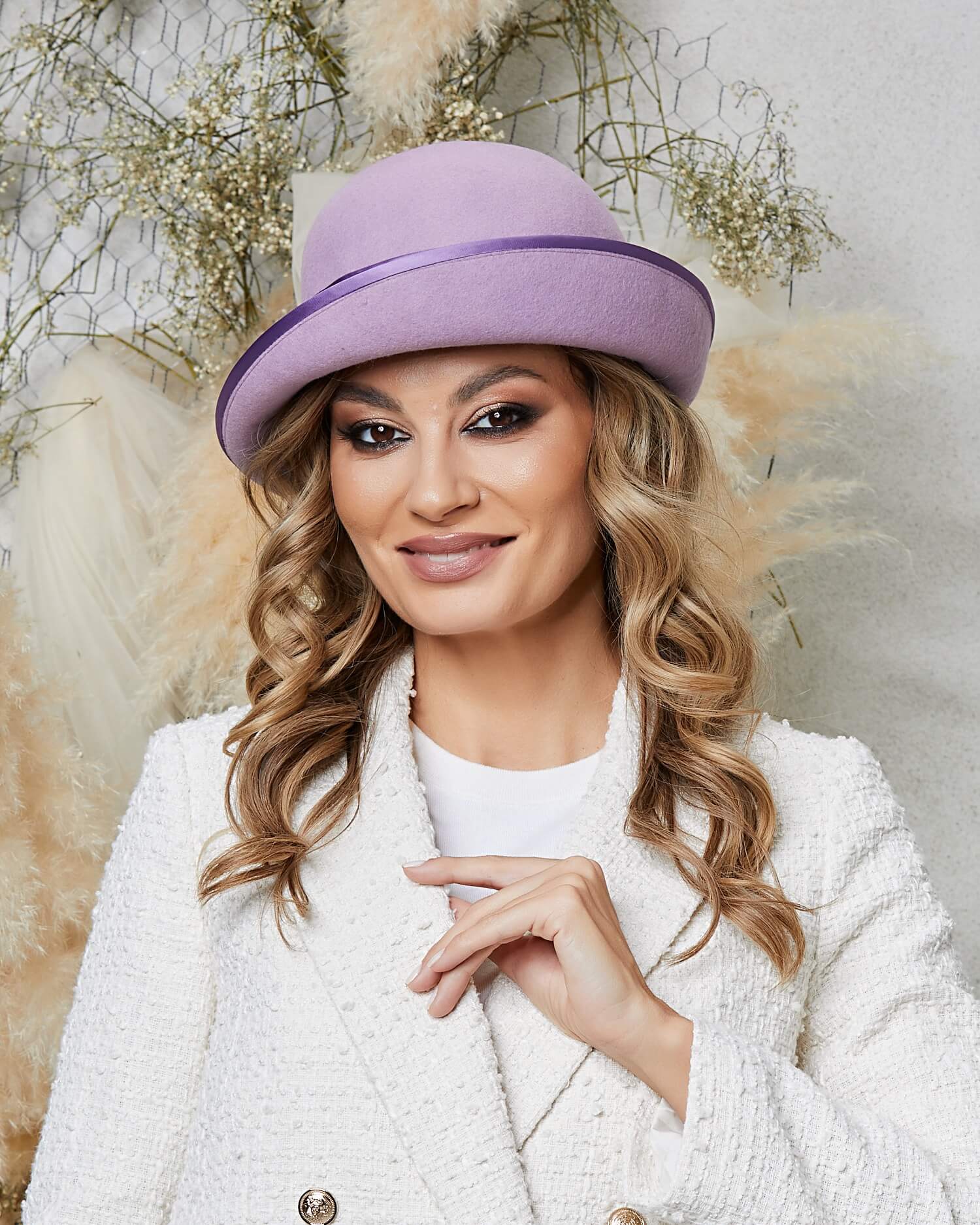 Palarie de dama Daniela 4 – culorile au puterea de a evoca trairi, iar nuanta placuta de mov aleasa ne transporta in universul aristocratic al epocilor trecute. Este o culoare aparte care insufleteste si cele mai sobre tinute, oferind un strop de prospetime si eleganta, insa fara a fi ostentativa.