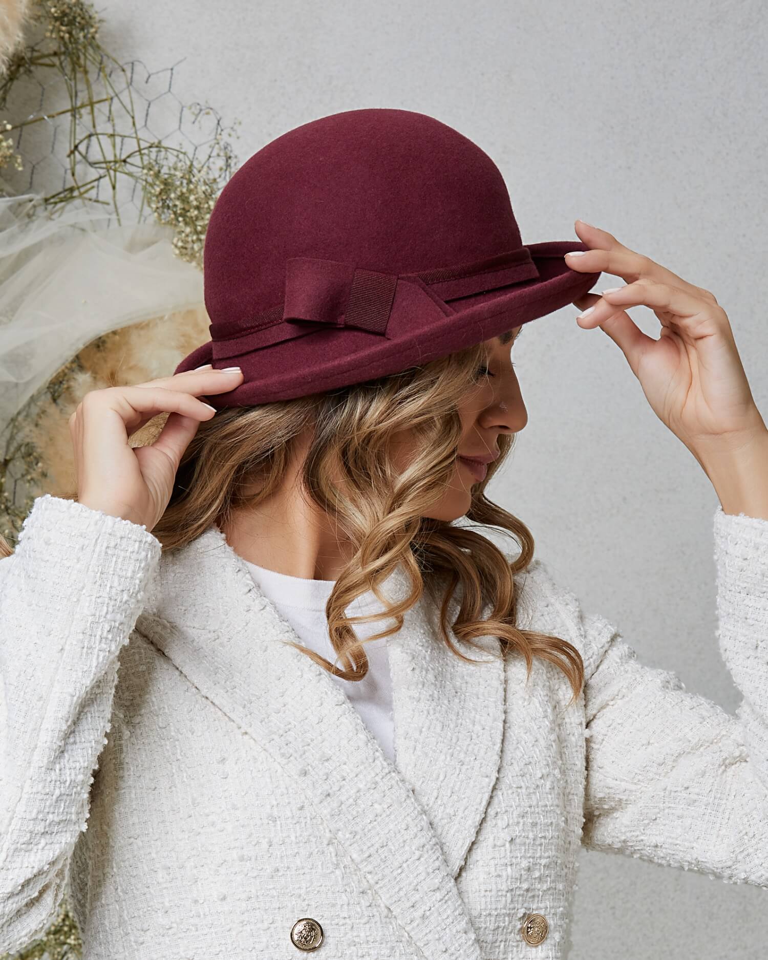 Palarie de dama Ilaria – desigur, confortul nu a fost neglijat. Banda elastica din interior asigura nu doar ca piesa va ramane fixa, ci si ca va absorbi orice exces de transpiratie. Astfel, indiferent de vreme sau de eveniment, te poti baza pe ea pentru a te simti la fel de bine pe cat arati. Revenind la esenta acestei palarii, este evident ca poate fi purtata de femeile de orice varsta. Nuanta violet pruna se potriveste de minune cu nuante neutre, precum gri, negru sau alb, dar si cu tonuri pastelate. Imagineaza-ti palaria asortata cu o rochie simpla, de culoare mov, sau cu un sacou gri antracit si o bluza alba, purtata la o iesire in oras sau la o intalnire importanta.