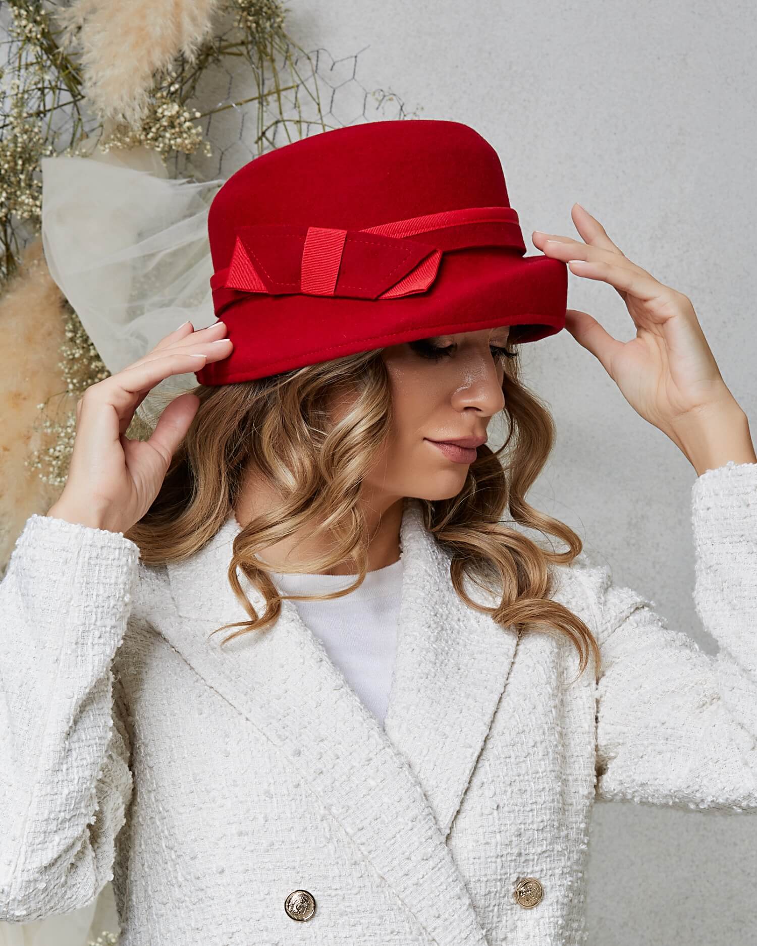 Palarie de dama Lucretia – inspiratia din anii ’50-’60 este evidenta in fiecare detaliu al palariei, amintind de stilul iconic al lui Audrey Hepburn, o sursa de inspiratie pentru multe doamne de-a lungul decadelor. Aceasta palarie este perfecta pentru a aduce un omagiu acelei epoci, dar in acelasi timp pentru a sublinia eleganta moderna. Culoarea rosie este prima care capteaza atentia, o nuanta plina de viata si pasiune. Aceasta nu este doar o simpla palarie rosie, ci un accesoriu ce imbina calitatea superioara cu o estetica irezistibila, fiind astfel o alegere ideala pentru femeile cu gusturi rafinate, care doresc sa adauge un strop de culoare si personalitate tinutelor lor.