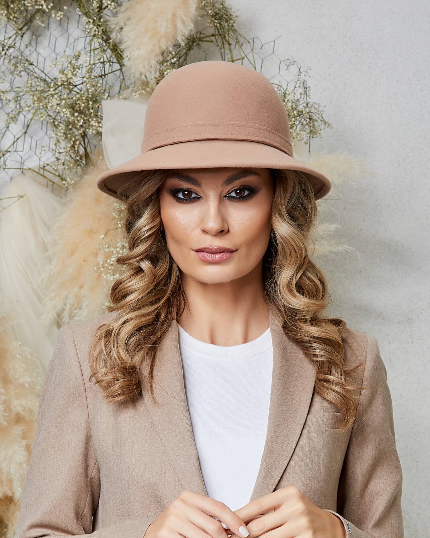 Palarie de dama Victoria 2 – acel accesoriu care imbina cu succes nu doar frumusetea si eleganta, dar si practicitatea si confortul. Culorile tari, care de multe ori acapareaza atentia, au farmecul lor, insa nu pot concura cu subtilitatea si versatilitatea oferita de tonul bej. Aceasta nuanta calma, se potriveste aproape cu orice, facand-o alegerea perfecta pentru o varietate de tinute si ocazii. La baza creatiei sta fetrul semi-rigid din lana, un material ce combina doua dintre cele mai apreciate caracteristici: robustetea si lejeritatea. Greutatea redusa a materialului o face surprinzator de usoara. Cu o compozitie de 100% lana, se garanteaza o experienta confortabila, indiferent de conditiile meteo.